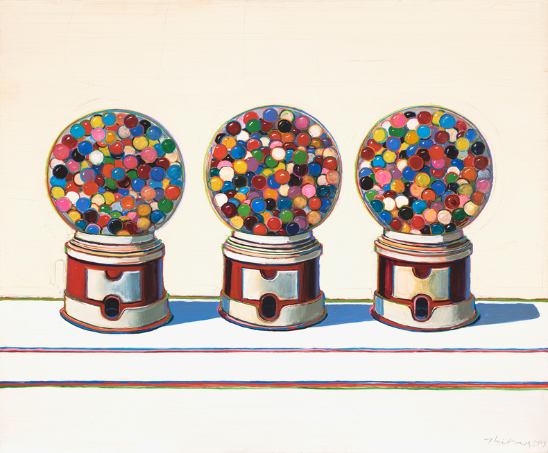 Wayne Thiebaud’s artistic training could hardly have been more American: he apprenticed as a cartoonist at Walt Disney Studios and served in a unit commanded by Ronald Reagan when he was making art for the Air Force during the Second World War. So it’s no surprise that American popular culture, in an era when people’s wallets were ever swelling, provided his most important subjects: painting lipsticks, pinball machines or decadent desserts, Thiebaud captured consumer pleasures so frequently and single-mindedly that not only individual works but his oeuvre as a whole transmits a sense of surfeit. That’s not to say that the still lifes are simple celebrations of post-war affluence. Many of the objects cast long shadows and appear untouched, as if surplus to requirements; the resulting melancholy is as reminiscent of Morandi as it is of Chardin or Cézanne. This exhibition at the Courtauld focuses on the lush yet somehow ambivalent paintings Thiebaud made in the 1960s (10 October–18 January 2026).