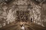 Nonetheless, step inside the Whitworth since its £15 million transformation by MUMA architects, and you’ll find more than just absent fireplaces. Upstairs you’re surrounded by Tits in Space, a wallpaper designed by Sarah Lucas and soon to be seen in every Mancunian sitting room. A permanent installation by David Batchelor entitled Plato’s Disco casts spinning coloured lights above a stone-handled staircase. Cai Gio-Qiang has smeared gallery walls with gunpowder dust and dug a pond in the floor; outside, a sea of mud and stranded construction equipment stand in for a future art garden. At the heart of the newly restored exhibition halls, Cornelia Parker’s exploded shed Cold Dark Matter: An Exploded View (1991) hovers in suspended animation, as if ready to clatter to the floor.