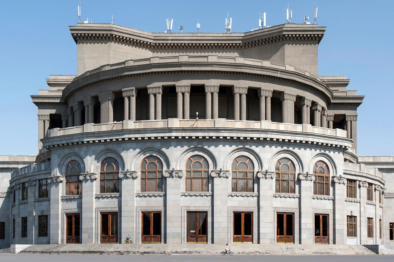 By the time of his death in 1936, just a small part of Tamanyan’s vision had become reality. He was a national hero and his coffin was placed in the centre of his unfinished ‘Folk House’ for the public to mourn. Now the Opera and Ballet Theatre, it is a pharaonic edifice of grey tuff that rises like a dark pyramid in the central node of Tamanyan’s plan. The entire city zeroes in on this monument to Armenian culture; a marked contrast from other planned capitals, which tend to hinge on parliament buildings and other administrative structures.