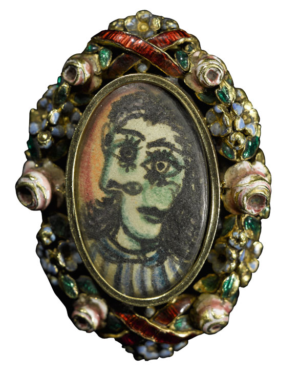 Jewel portraits are obviously like buses: you wait for ages and then two turn up at once. First, at Sotheby’s, came the ring that Pablo Picasso presented Dora Maar in the 1930s – a miniature portrait of his lover and muse, executed in ink and coloured pencil and set into an ornate ‘found’ metal ring. Its story was recounted by the art critic and friend of the couple, James Lord, in his book Picasso and Dora (1993). The pair were walking along the Pont Neuf in Paris, when Picasso reproached his mistress for having prevailed upon him to exchange a work of art for a bauble, at which point the ever-tempestuous Dora pulled the said cabochon ruby ring from her finger and flung it into the Seine. She soon regretted the act, and implored Picasso to create a replacement. His creation remained with her until her death in 1997.