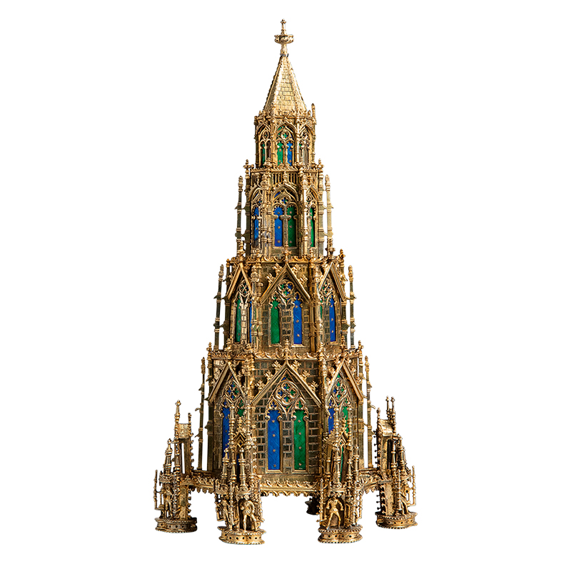 Matthew Reeves of Sam Fogg Ltd, which focuses on the medieval period, is more sanguine: ‘I think people are coming round to Spain – they realise the market for Netherlandish and Italian silver is out of reach.’ Although ‘the visibility of Spanish silver in the English-speaking world has improved’ he suggests that scholarship in English has not kept pace with developments in Spain, particularly in the difficult area of hallmarking. Sam Fogg has a micro-architectural monstrance (the most important liturgical object because it showed the host) from northern Spain, c. 1450, with feet adapted for an object from later in the 15th-century; it was once owned by James de Rothschild, whose forebears had commissioned craftsmen, possibly German, to re-enamel the window. ‘It is an object that has changed to keep in fashion,’ Reeves says. Sam Fogg also has an untouched architectural monstrance with two saints, also made in Barcelona in c. 1520–30. Reeves says, ‘The bulk of what we do is not secular. If it is secular, it barely crosses our desk and it has gone.’