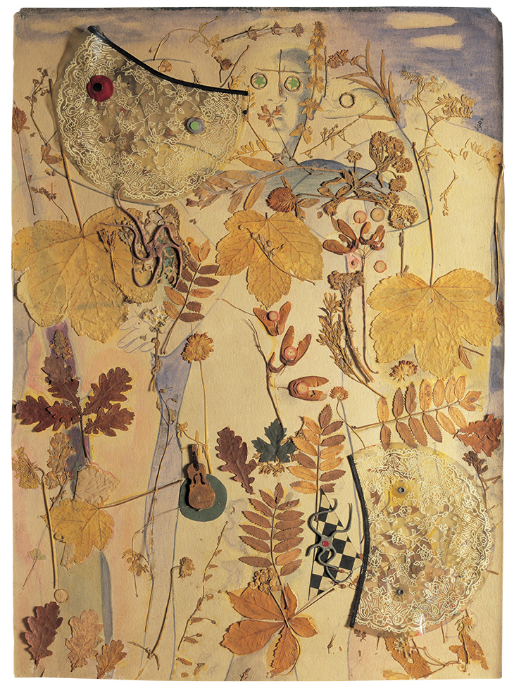 ‘Life is not a question of points, but a question of flow. It’s the flow and the hide and seek of flow that matters,’ reads a page in a notebook that belonged to Eileen Agar. Flow – essential for an artist whose materials were thrown up by the sea. Agar moved with the tide, combing beaches in Dorset, looking for driftwood and shells, or for human-made objects rendered organic, surfaces smoothed or encrusted, by their submersion in the sea. On the coast of Brittany, she saw rocks shaped like limbs or buttocks. She looked for the surreal in nature, opened her eyes to its symbols. Seeing the forms of trees or pebbles, she was, she wrote, ‘astounded to discover that dumb nature makes an effort to speak to you, to give you a sign […] to symbolise your innermost thoughts’. Hide and seek.