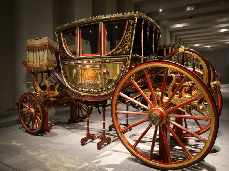 While only a fraction of the holdings will be on display at any given time, the building houses a diverse mix of objects ranging from jewellery to books. Bibliophiles can marvel at a first edition of the first part of Cervantes’s Don Quixote (1605), while the inaugural temporary exhibition ‘In Motion: Carriages and Other Vehicles’ showcases technological and aesthetic developments.