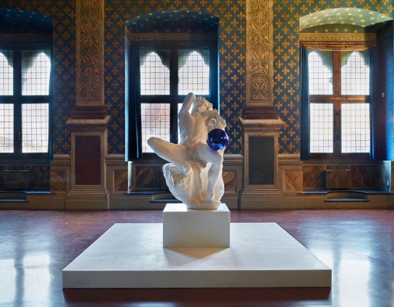 The following morning, in the Palazzo Vecchio’s grand Sala dell’Udienza, the artist was presented with the keys to the city, following an elegant speech by the city’s 39-year-old mayor, Dario Nardella. All guests were then ushered through to the adjoining Sala dei Gigli where the 2013 Gazing Ball (Barberini Faun) – a second Koons piece, also selected by the artist – is on show until 28 December. The bright blue reflective sphere placed on this plaster cast of the celebrated erotic antiquity mirrors not only its viewers, but also Donatello’s monumental bronze masterpiece Judith and Holofernes as well as Ghirlandaio frescoes nearby. Koons is nothing if not fearless to invite comparison with the greatest of all Renaissance artists.