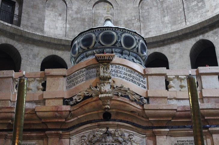 Since 1947, an incongruent iron cage-like structure, put in place by British Mandate authorities, supported the Edicule. Its marble walls were blackened by the build-up of soot from the church’s many candles and lanterns, and the wear and tear of centuries of pilgrimage were evident both inside and out.
