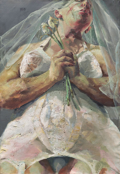 Jenny Saville’s The Bride was also painted during her final year, at the Glasgow School of Art in 1992. After her graduation show, every work on display was tracked down and bought by Charles Saatchi who offered her an 18-month contract and exhibition. Great mounds of female flesh compressed into picture planes that barely confine their bulk dominate these early paintings but, as the artist once said, it is the neuroses bursting through the ample folds that interest her. ‘I’m interested in the physical power a large female body has – a body that occupies a lot of physical space, but also someone who’s acutely aware that our contemporary culture encourages her to disguise her bulk and look as small as possible.’