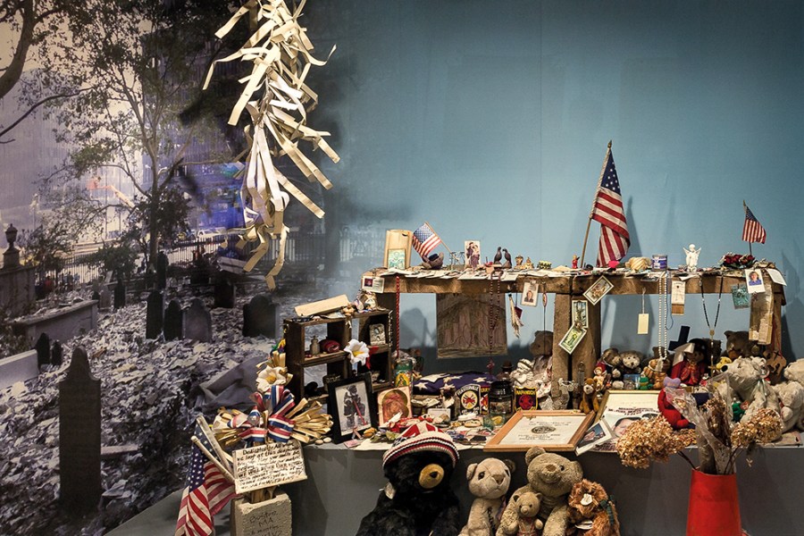 The ‘9/11’ and ‘Fire’ display cases in the ‘Objects Tell Stories’ exhibition at the New-York Historical Society. Photo: Corrado Serra