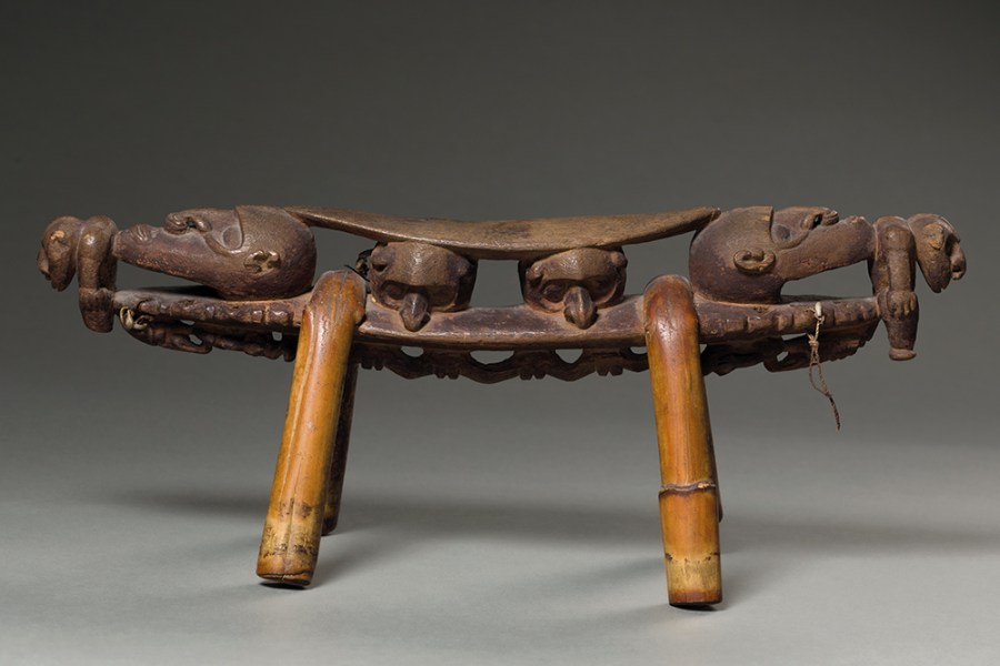 The section on dreams, the unconscious and immateriality contains objects that were conceived with what might be called a Surrealist approach. Here are works linked with sleep, such as neckrests, or those inspired by dreams, visions or trance-like states. Dreaming, for instance, is the means through which the Dan people of Côte d’Ivoire and Liberia communicate with the holy spirit or Zu. Dan masks were made after a dancer dreamt of a mask and instructed the maker how it should look.