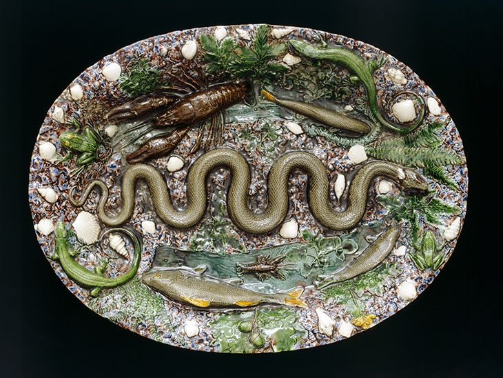 Oval dish with moulded eel, fish and crab (1565–75), France. © Trustees of the Wernher Foundation/English Heritage