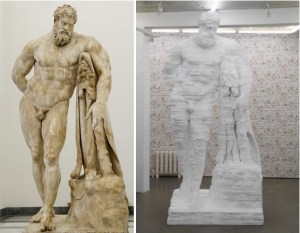 Two Hercules: the Farnese Hercules from the Baths of Caracalla in Rome; and Matthew Darbyshire's polystyrene 'Hercules' (2014).‘It was in the Royal Academy Schools corridor, where for three years I’d take fag breaks at his feet and admire those thundering thighs!’ James Cahill spoke to Matthew Darbyshire about his polystyrene sculptures and the next steps for contemporary art.